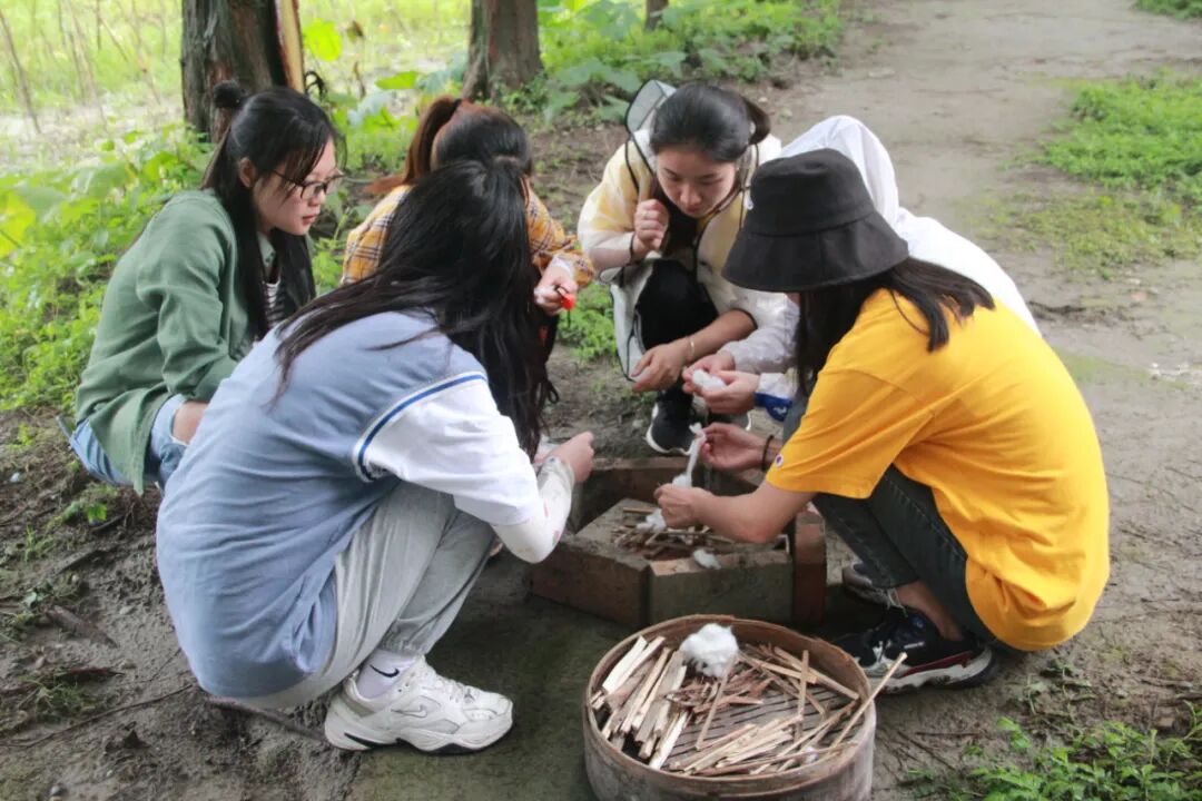 探秘雨中大自然。在森林课程中,没有不合适的天气。老师们在细雨中探秘大自然,观察记录植物昆虫、搭建庇护所、野外生火,每一次趣味体验,都有新的成长与感悟。